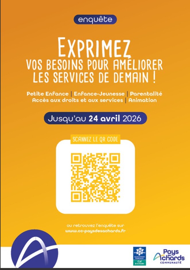 Avec cette enquête, la Communauté de Communes du Pays des Achards affirme sa volonté de construire, avec vous, des services plus proches de vos besoins.