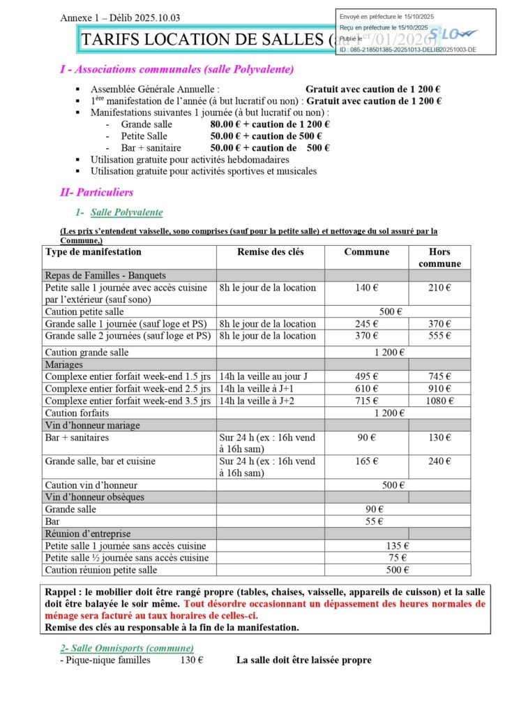 TARIFS DE LOCATION DE LA SALLE POLYVALENTE